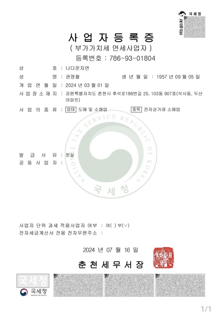 온라인에서 농산물을 판매하려면 주소지의 지자체 세무서에 사업자등록을 하고, 지자체에 통산판매업 신고를 해야 한다. 나는 홈텍스에서 온라인으로 신청하고 사업자등록증을 발급 받았다. 농산물을 온라인에서 판매하지 않는 농업인이라면 구지 사업자등록을 하지 않아도 된다.