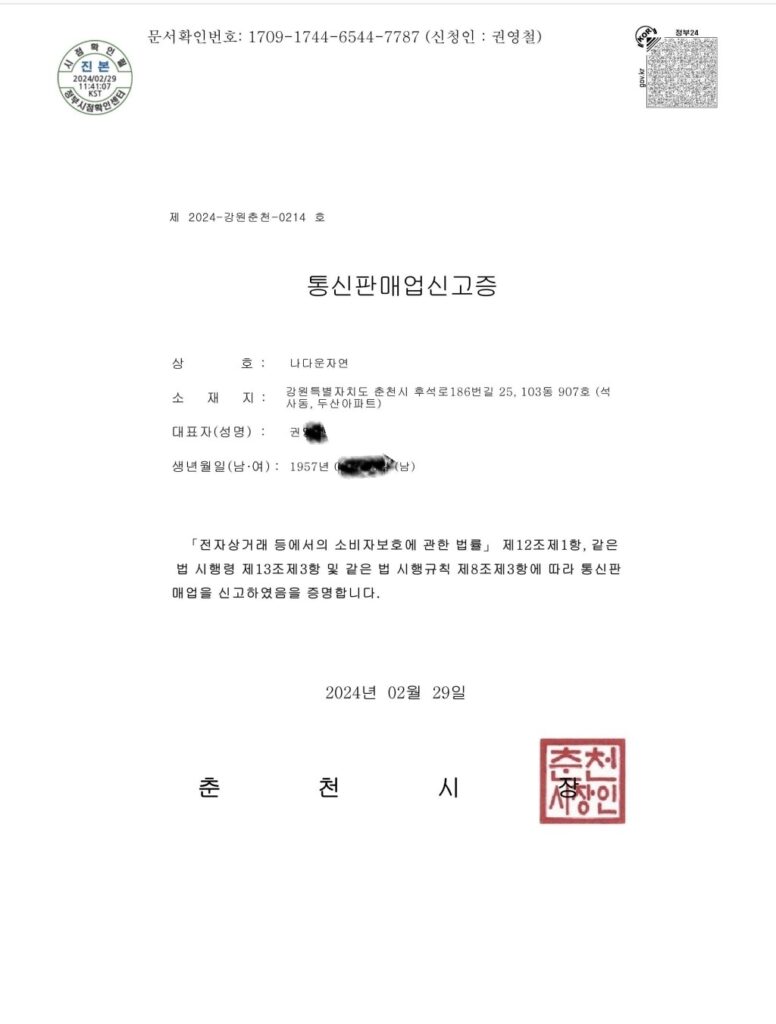 소비자가 판매자의 신원을 알 수 있도록 쇼핑몰 사이트의 메인 페이지에 상호, 사업자 등록 번호, 통신 판매업 신고 번호를 고지해야 한다.