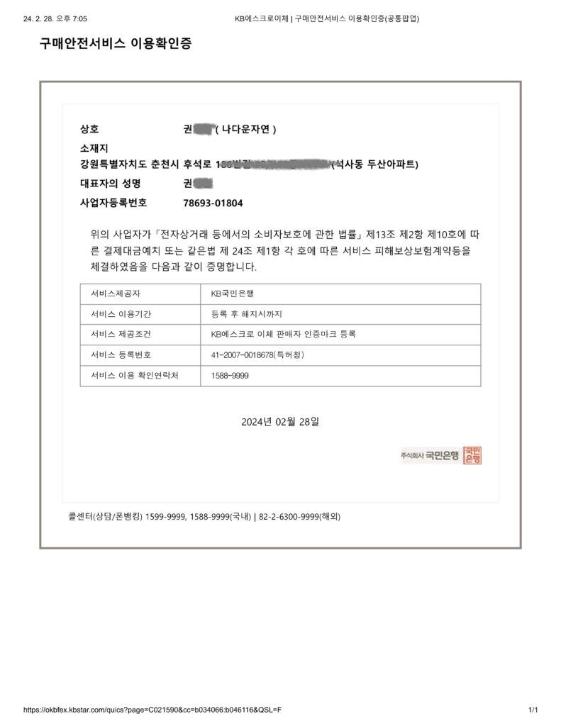 직접 온라인 쇼핑몰 운영을 위해 PG사에 가입했다면, 별도 신청 없이 PG사에서 구매안전서비스 이용 확인증을 발급받을 수 있다.